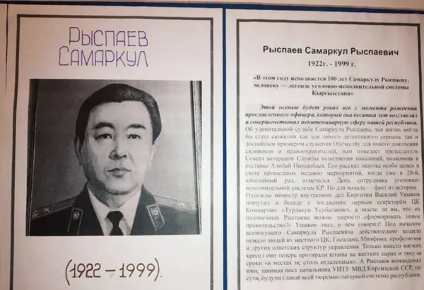 Пошёл уже 27-й год как не стало человека, имя которого навсегда вписано в историю уголовно-исполнительной системы Кыргызстана - Самаркула Рыспаева. Его удивительная жизнь - словно готовый сценарий для многосерийного фильма: яркая, полная драматизма и мужества. А его деятельность - достойный пример служения Отечеству для нового поколения силовиков и правоохранителей.